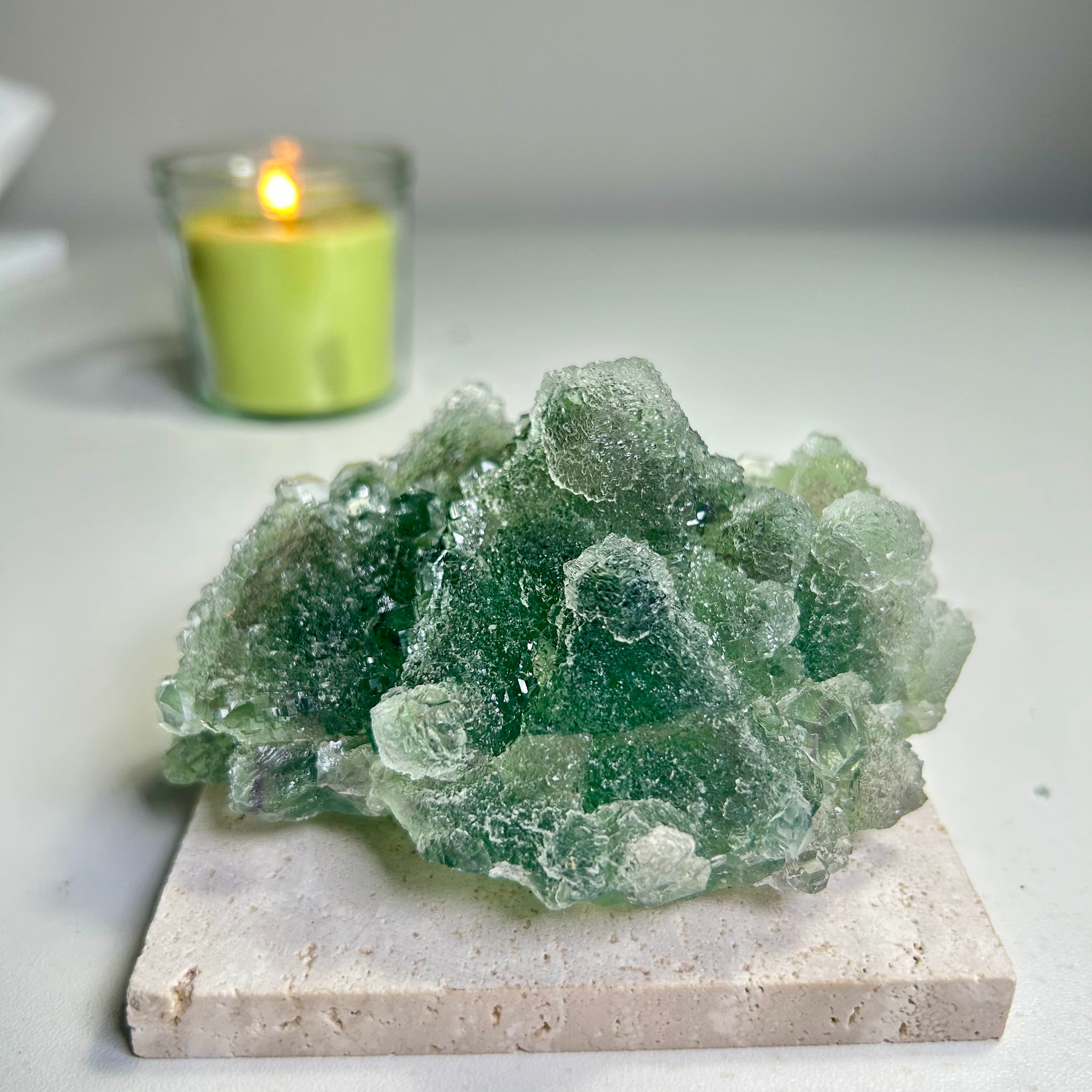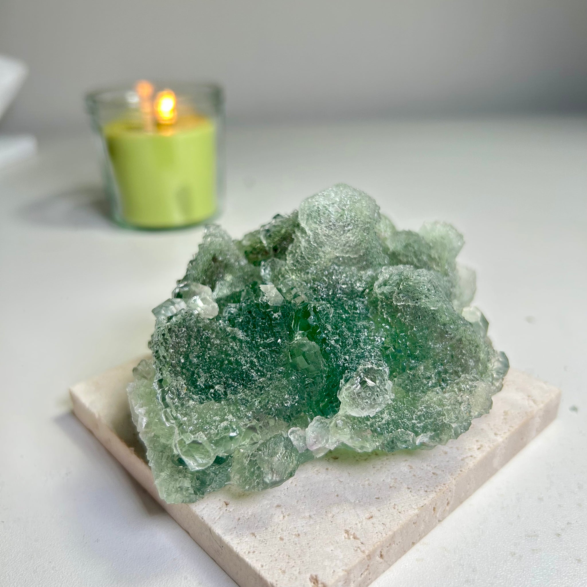 Collectors love this type of raw fluorite for its unique rounded shape and thick icy texture. This specimen is ideal as a display mineral, meditation stone, or a meaningful addition to a collection. Its calming green tones bring a clear and grounding energy to any space.